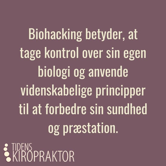 Biohacking betyder, at tage kontrol over sin egen biologi og anvende videnskabelige principper til at forbedre sin sundhed og præstation.